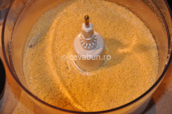 - Răciţi migdale – pentru a deveni casante – şi tocaţi-le fin.