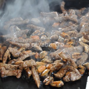 - Adăugaţi carnea de porc şi frigeţi-o la foc iute.