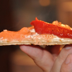 Pizza cu mascarpone şi somon afumat se consumă caldă.