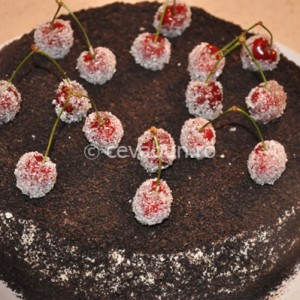 - Decoraţi tortul cu cireşe “cristalizate”.