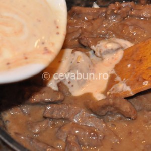 - Faceţi un liezon din muştar cu smântâna şi pasta de ardei iute.