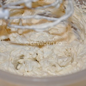 - Amestecaţi mascarpone cu zahărul şi sarea până se topesc granulele.